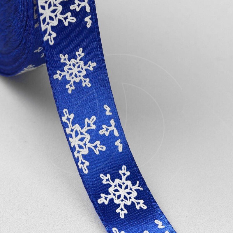 Доставка Лента для декора и упаковки Атласная Снежинки Синяя 1,5 см из магазина в вашем городе: